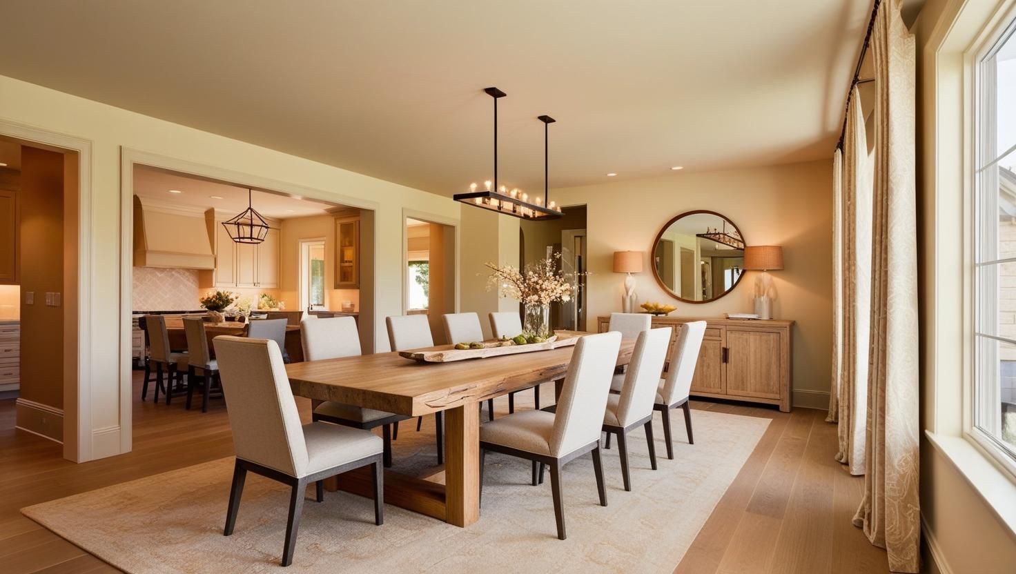 Ensure your dining room connects well with nearby rooms. For example, if your living room has a modern touch, the dining area should have a similar tone for a seamless transition.