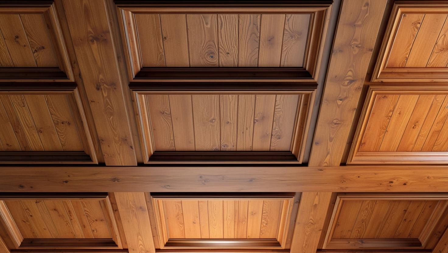2. Wooden Ceiling Panels for a Warm Look