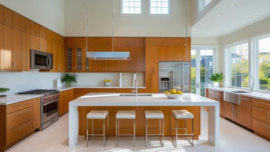 Technology is deeply integrating with kitchen interiors. In 2025, modular kitchens with integrated appliances and smart controls are in high demand.