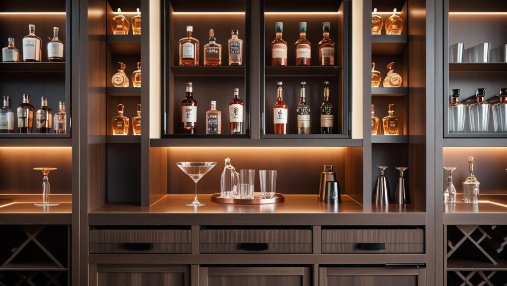 A great home bar is not just about aesthetics—it’s about intelligent, functional storage. A well-drafted storage plan ensures everything from drinks to tools is accessible and neat.